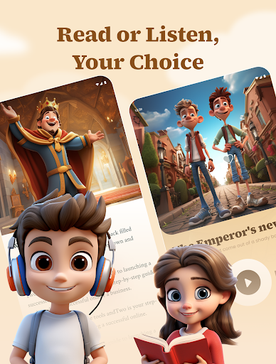 Vielleicht ist es für Sie in Ordnung, Bücher nur zu lesen, weil sie interessant sind, klar. Aber für Kinder ist das nur die halbe Miete, denn manchmal brauchen sie mehr als nur eine Geschichte. Die gesamte Tale Twist-App sieht aus wie ein kleines Märchen. Für jedes Buch oder jede Kurzgeschichte haben wir ein wunderschönes Design und Illustrationen, sodass Ihr Kind sie anschauen und sich vorstellen kann, was Sie ihm alles vorlesen.